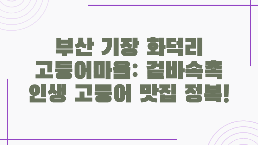 부산 기장 하면 떠오르는 신선한 바다와 아름다운 풍경, 그리고 빼놓을 수 없는 먹거리가 있죠! 그중에서도 쫄깃한 식감과 담백한 맛으로 사랑받는 고등어는 기장 여행의 단골 메뉴인데요.
