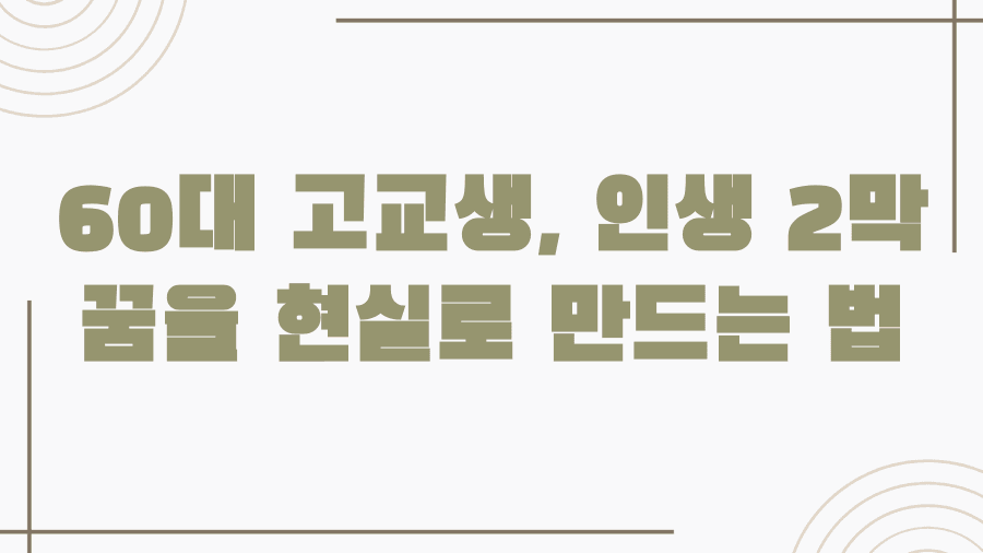 특히, 학창 시절의 추억을 뒤로하고 인생의 새로운 장을 열고자 하는 60대 분들에게 '고등학교 과정'은 다시 한번 도전을 꿈꾸게 하는 특별한 의미를 지닐 수 있습니다.
